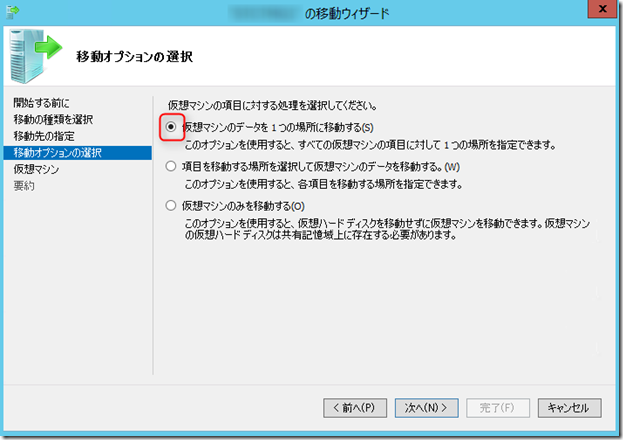 Windows Server 2012 で Hyper-V を実行しているサーバーから別のサーバーへ、実行中の仮想マシンを移動する。